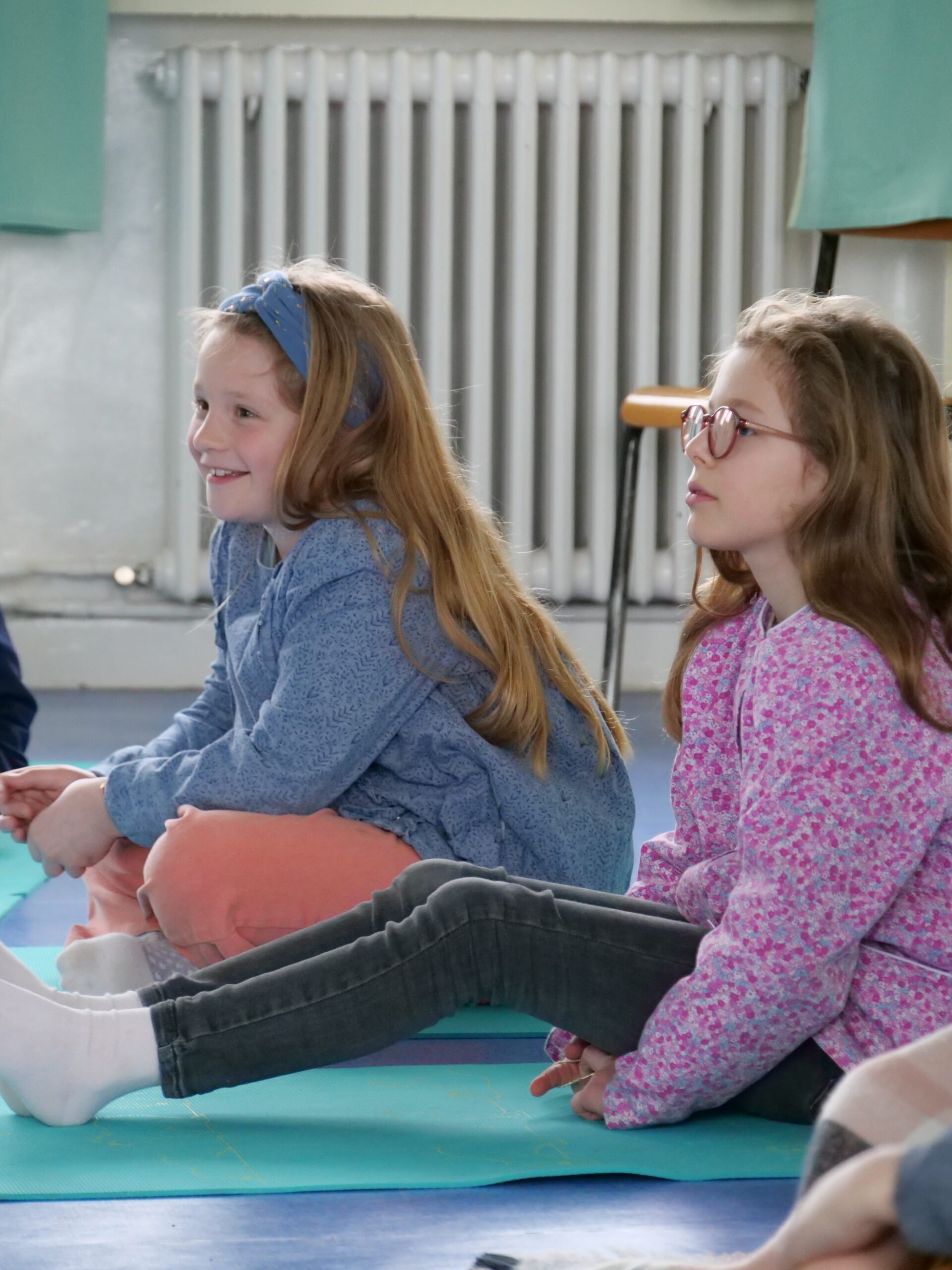 En maternelle, il est proposé 8 séances qui permettent aux enfants de voyager avec un récit et une expérimentation d’une pratique de méditation en lien avec l’histoire de 2 personnages. Cela permet d’aborder l’attention à soi (grâce aux 5 sens, à la respiration et aux émotions), aux bonheurs du quotidien et aux autres.