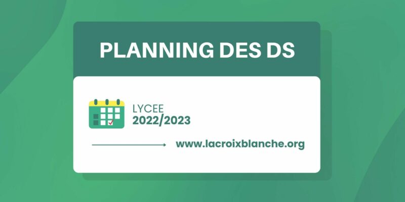 Planning des DS Categories Actualités Date 07/10/2022 Vous trouverez ci-dessous le planning des DS pour cette année scolaire 2022-2023 PLANNING DES DS : Planning-DS 2022-2023Télécharger Share: Previous post Bienvenue aux élèves du Sacré Cœur de Madrid ! 07/10/2022 Next post Semaine du Goût - Elior 07/10/2022